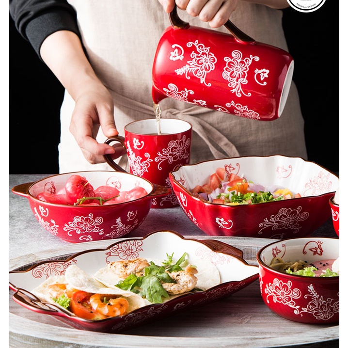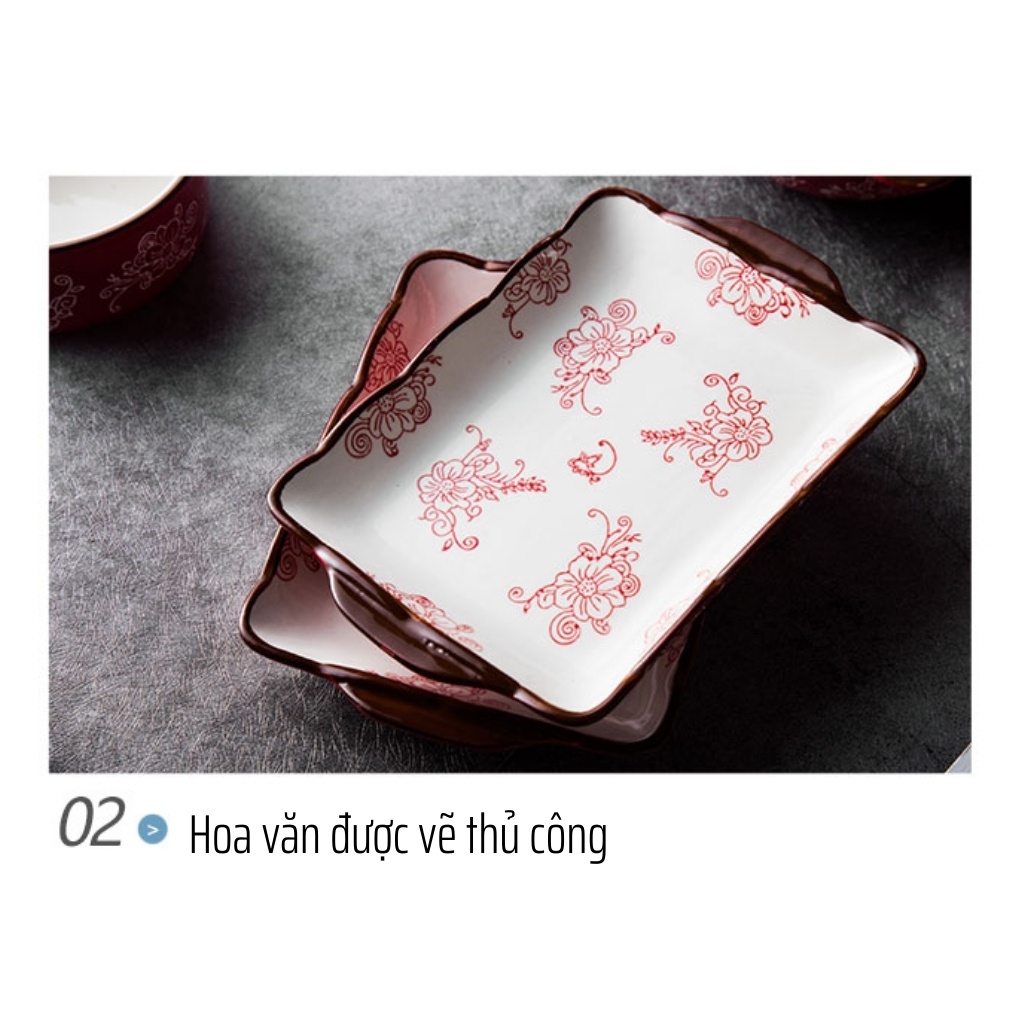 Nhà cửa & Đời sống > Bộ đồ bàn ăn > Dĩa || Bộ bát đĩa gốm sứ cao cấp màu đỏ sang trọng, hoạ tiết hoa vẽ tay thủ công phong cách Nhật Bản - Hàn QuốcCòn hàng