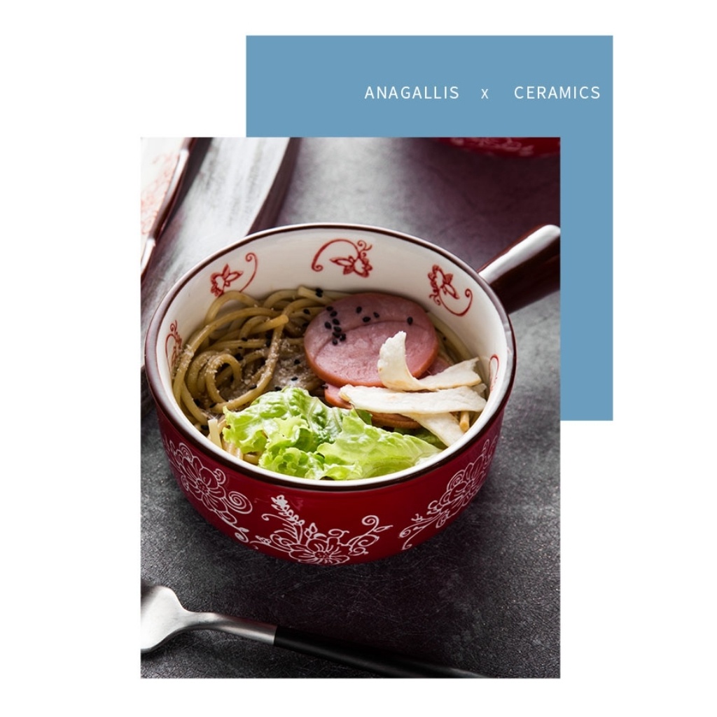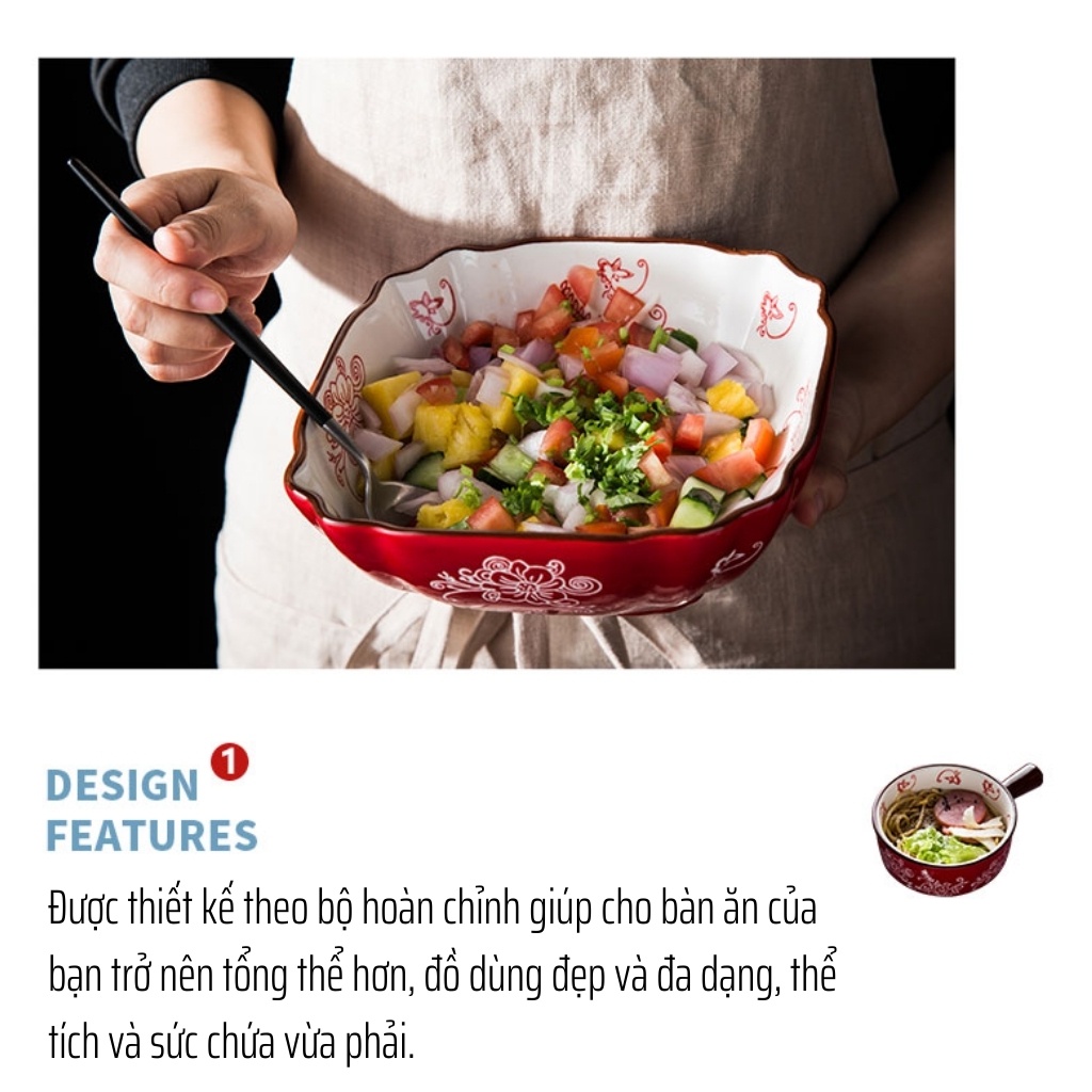 Giới thiệu Bộ bát đĩa gốm sứ cao cấp màu đỏ sang trọng, hoạ tiết hoa vẽ tay thủ công phong cách Nhật Bản - Hàn Quốc