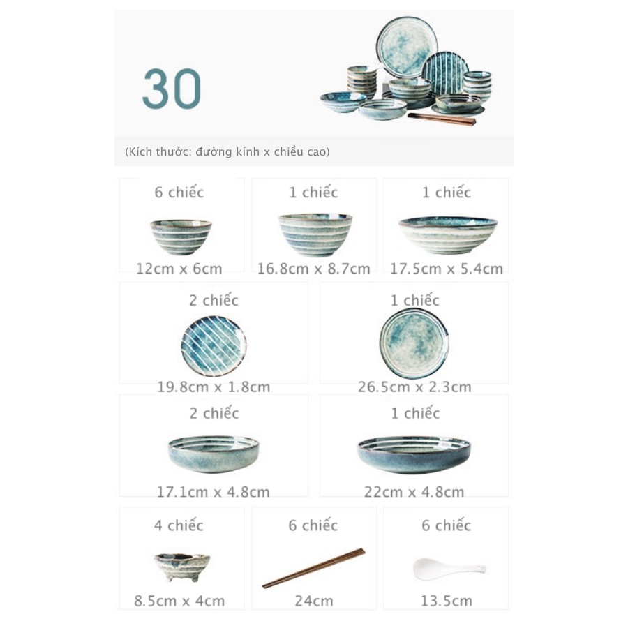 Giới thiệu Bộ bát đĩa gốm sứ cao cấp Scandinavian 30 món - cho gia đình 6 người - Có ảnh thật [Sẵn hàng]