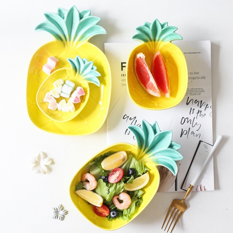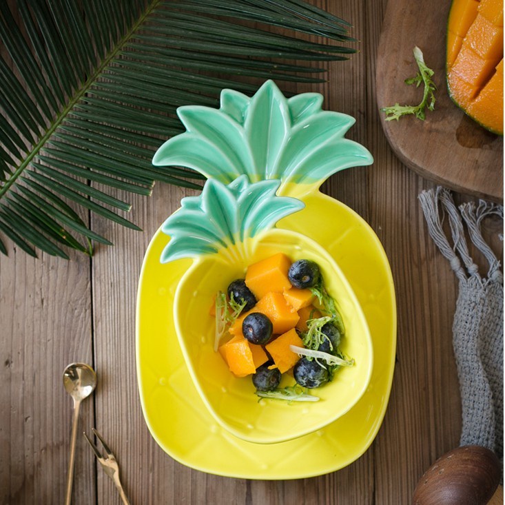 Nhà cửa & Đời sống > Bộ đồ bàn ăn > Dĩa || Bộ Bát Dĩa Gốm Sứ Decor Hình Quả Dứa Vàng Dễ Thương Chịu Nhiệt CaoCòn hàng