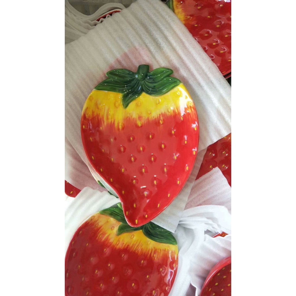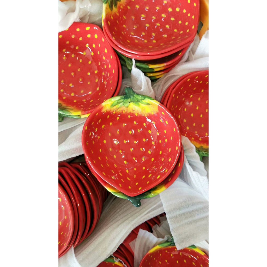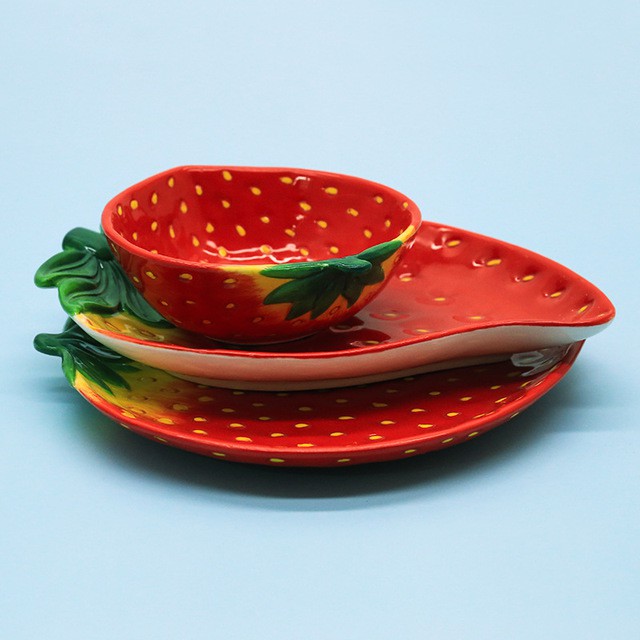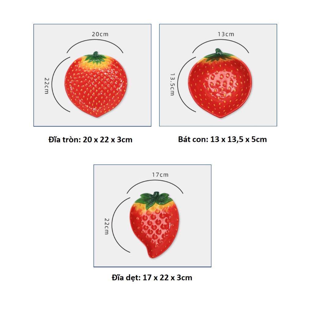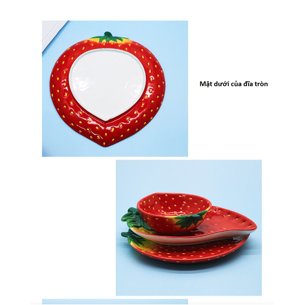 Bát đĩa gốm sứ tráng men hình trái dâu tây đỏ