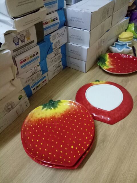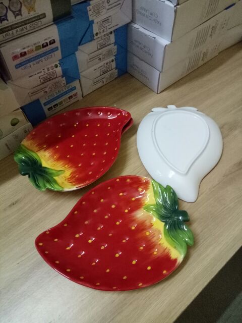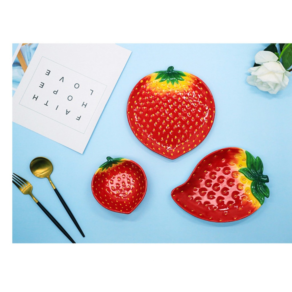 Nhà cửa & Đời sống > Bộ đồ bàn ăn > Dĩa || Bát đĩa gốm sứ tráng men hình trái dâu tây đỏCòn hàng