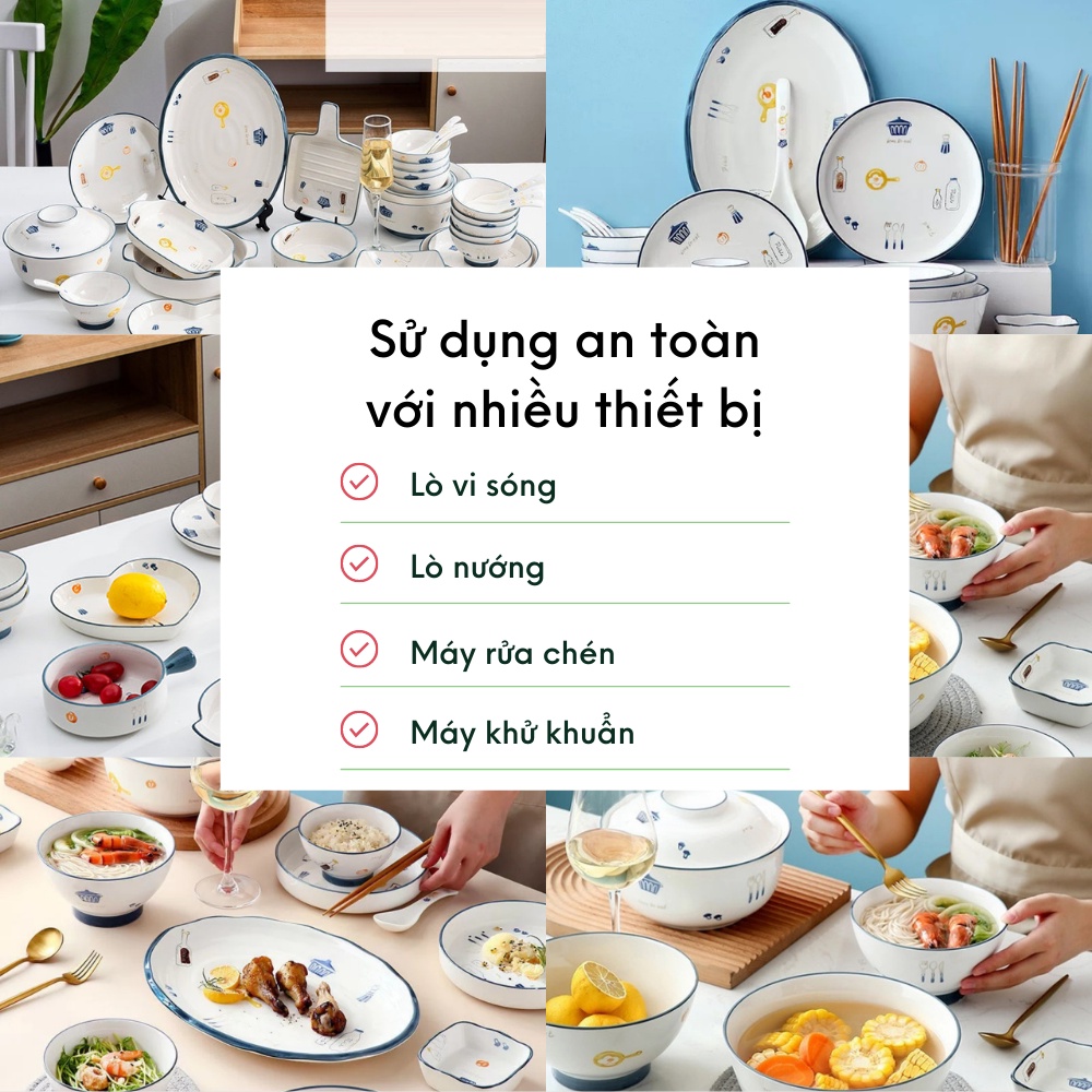 Bộ chén đĩa, set bát đĩa có thiết kế hiện đại kết hợp họa tiết xinh xắn sẽ làm sáng bừng bàn ăn gia đình bạn. Bát đĩa đẹp bạn cũng tự tin tiếp khách đó ạ.