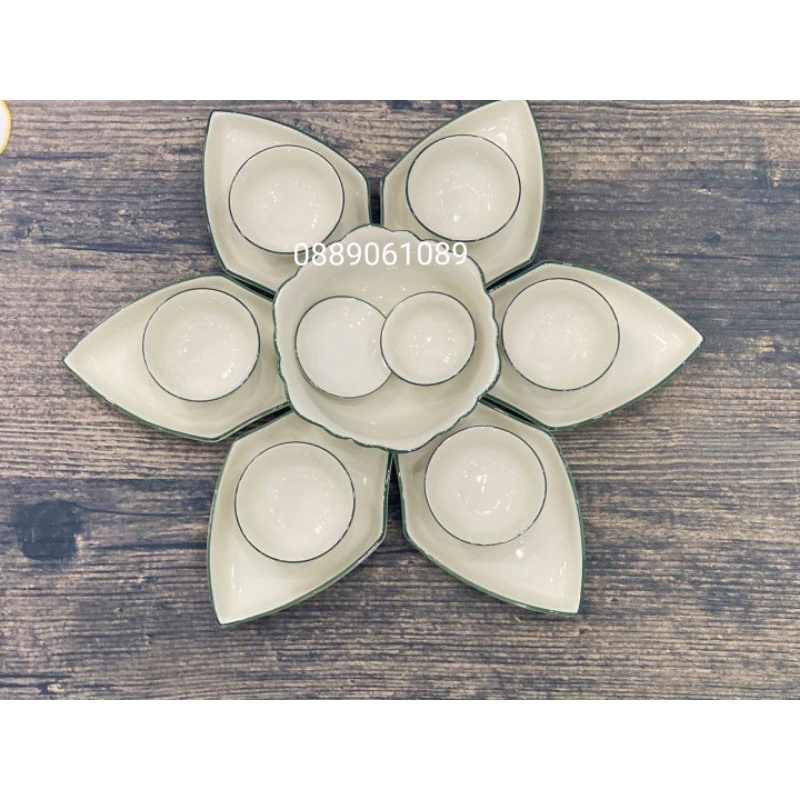 Bộ bát đĩa hình thoi Bát Tràng có đường kính 56cm.Bộ gồm 7 món và 15 món :