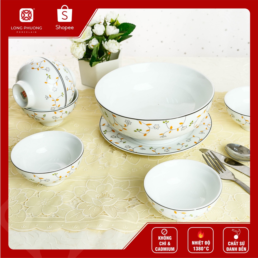 Bộ bát đĩa hoa dây cam A03 - Sứ Long Phương cao cấp hàng lẻ