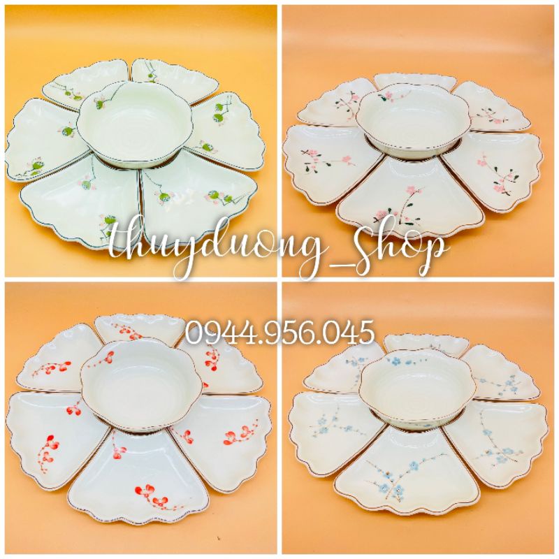 - bộ 7 món : 1 tô canh + 6 đĩa hoa