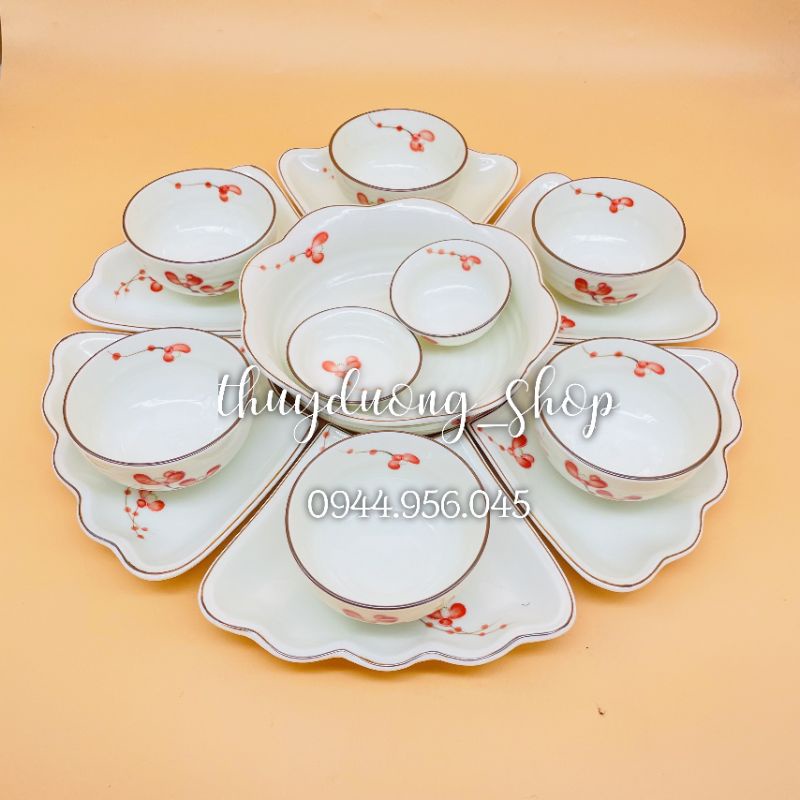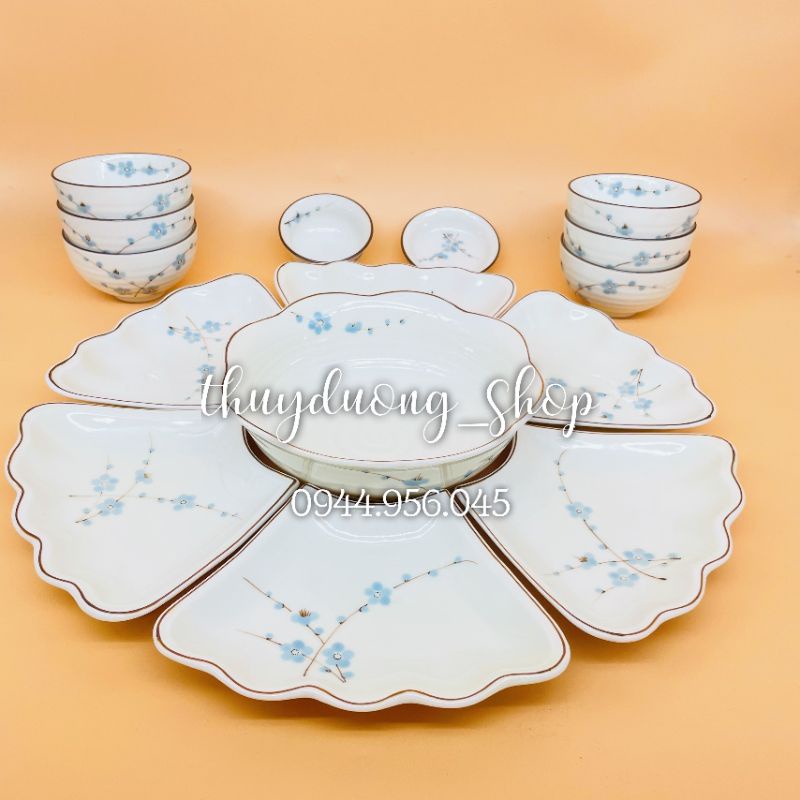 Bộ bát đĩa hoa mặt trời , Bộ Đồ ăn Bát Tràng ,hàng vẽ Tay cao cấp men Kem ( chọn mẫu )