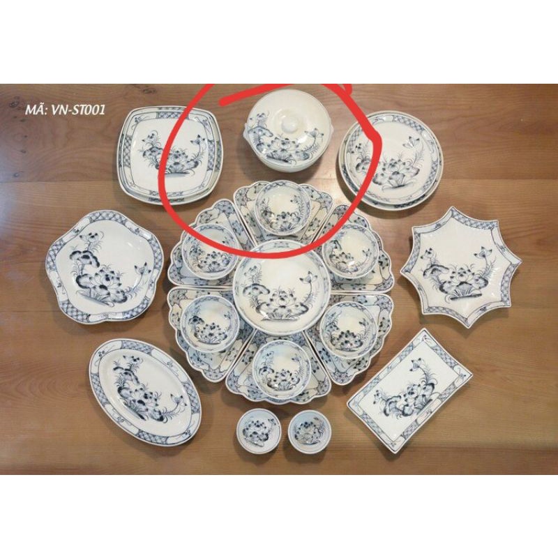 Bộ bát đĩa hoa mặt trời đk 55cm kèm âu cơm + nậm+ ấm trà bao gồm :1 âu cơm