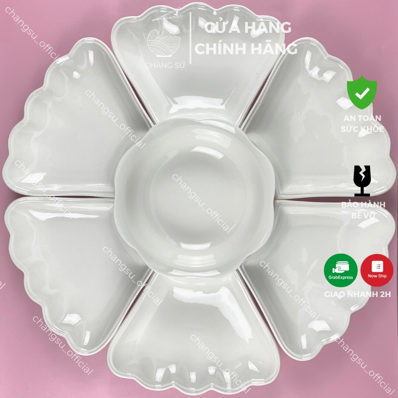 🔹 Bộ Sản Phẩm Bao Gồm 6 Đĩa Cánh Hoa và 1 Bát Tô