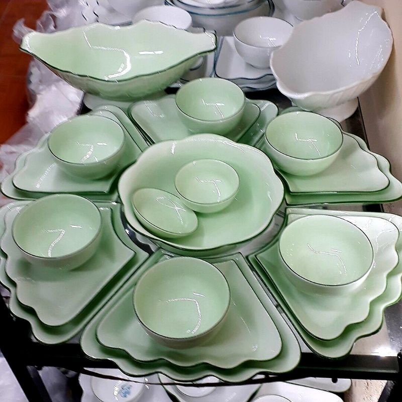 Nhà cửa & Đời sống > Bộ đồ bàn ăn > Tô || Bộ bát đĩa Hoa mặt trời men ngọc- Hàng sứ Bát Tràng.Còn hàng