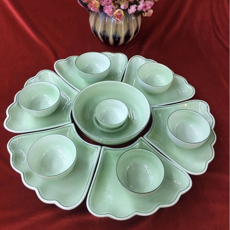 Bộ bát đĩa Hoa mặt trời men ngọc- Hàng sứ Bát Tràng.