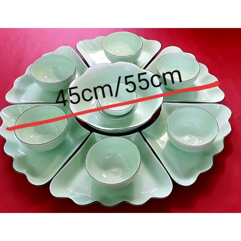Bộ bát đĩa Hoa mặt trời men ngọc được làm từ nguyên liệu sạch ,nung ở nhiệt độ 1300 độ C,khử chì khử các tạp chất có hại cho sức khỏe.Bộ bát đĩa Hoa mặt trời men ngọc có 2 size là 45cm và 55cm.