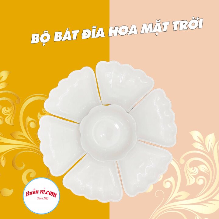 Nhà cửa & Đời sống > Bộ đồ bàn ăn > Tô || Bộ bát đĩa Hoa Mặt trời sứ cao cấp màu trắng sang trọng - Set bát đĩa hoa mặt trời đẹp thắp hương 01517Còn hàng