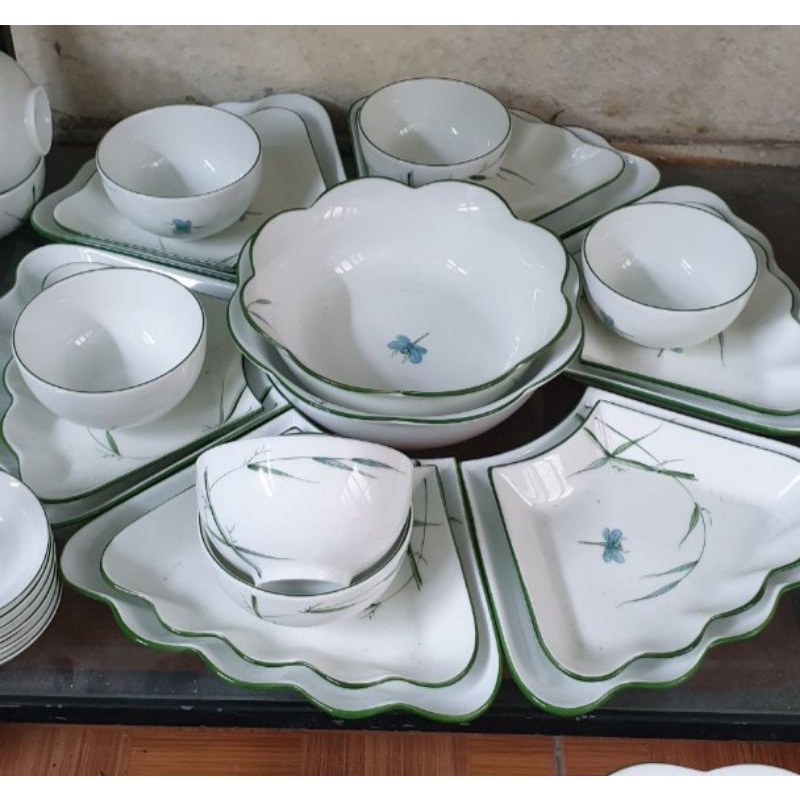 Nhà cửa & Đời sống > Bộ đồ bàn ăn > Tô || Bộ bát đĩa Hoa mặt trời vẽ cảnh trúc chuồn - Hàng sứ Bát Tràng.Còn hàng
