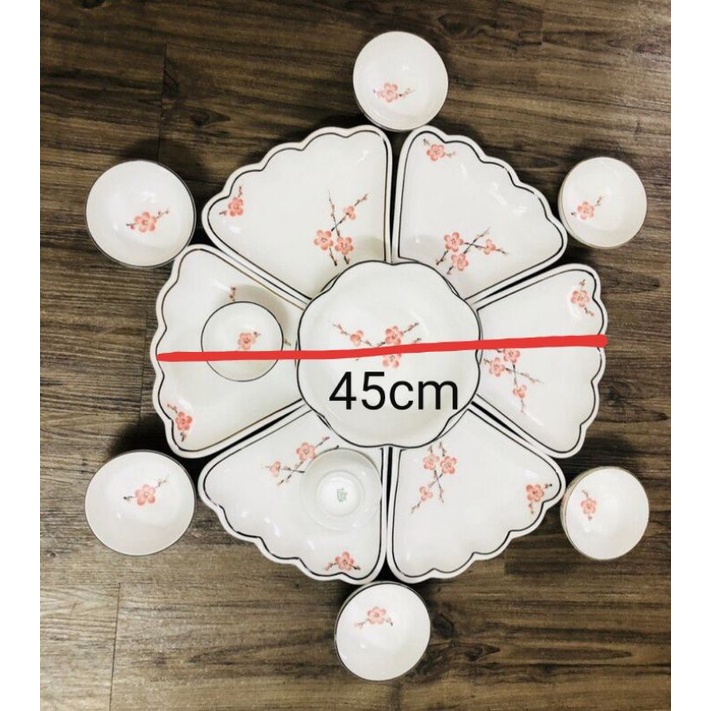 Bộ bát đĩa Hoa mặt trời vẽ hoa đào hồng đường kính 45cm gồm 7 chi tiết và 15 chi tiết :Bộ 7 chi tiết gồn :