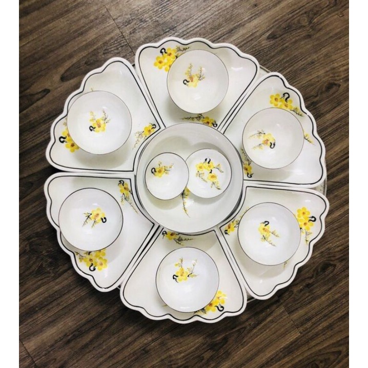Nhà cửa & Đời sống > Bộ đồ bàn ăn > Tô || Bộ bát đĩa Hoa mặt trời vẽ mai vàng đ.kính 45cm - Hàng sứ Bát TràngCòn hàng