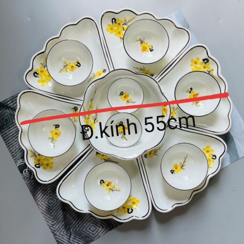 Nhà cửa & Đời sống > Bộ đồ bàn ăn > Tô || Bộ bát đĩa hoa mặt trời vẽ mai vàng,hoa đào hồng,đường kính 55cm.Hàng sứ Bát Tràng.Còn hàng