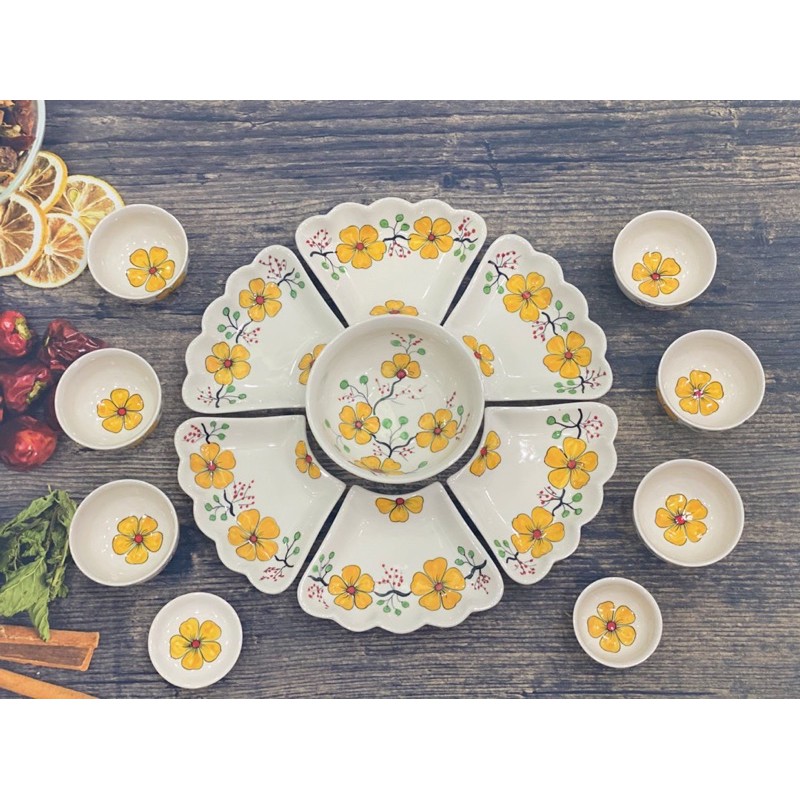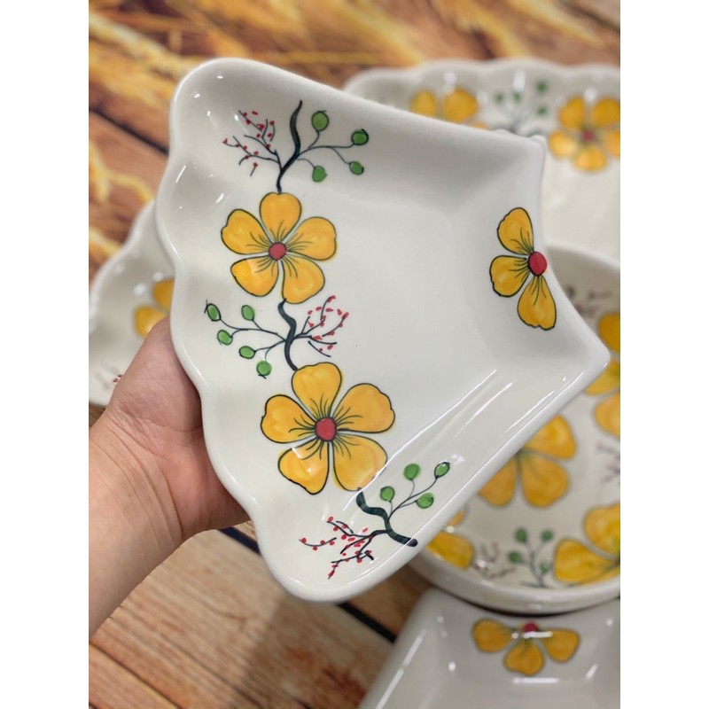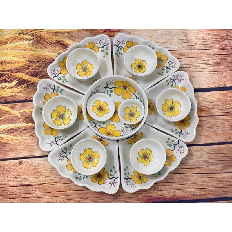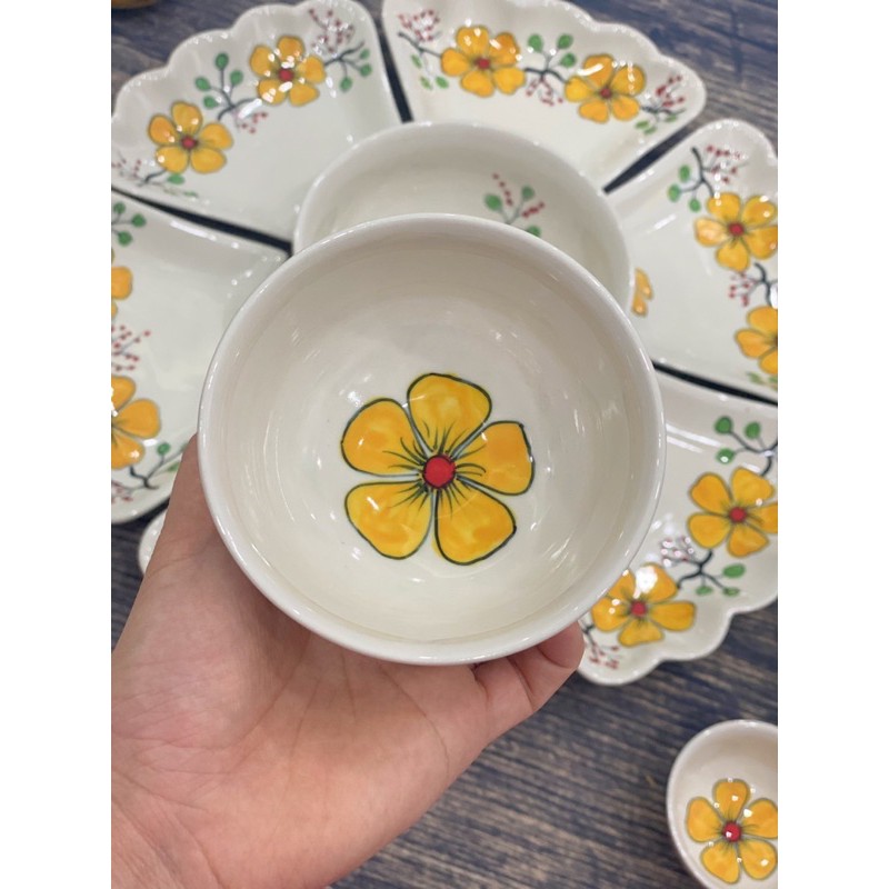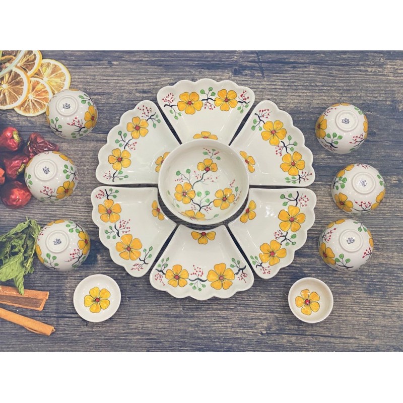 Nhà cửa & Đời sống > Bộ đồ bàn ăn > Dĩa || Bộ bát đĩa hoa mặt trời vẽ mai vàng gốm thủ công Bát TràngCòn hàng