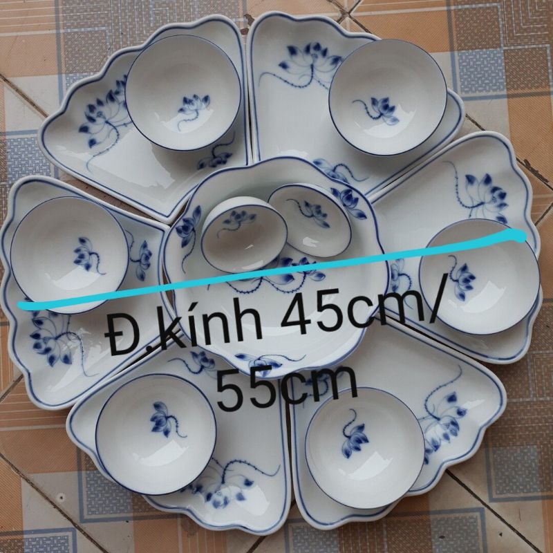 Nhà cửa & Đời sống > Bộ đồ bàn ăn > Tô || Bộ bát đĩa hoa mặt trời vẽ sen màu đại thanh.Hàng gốn sứ Bát Tràng.Còn hàng