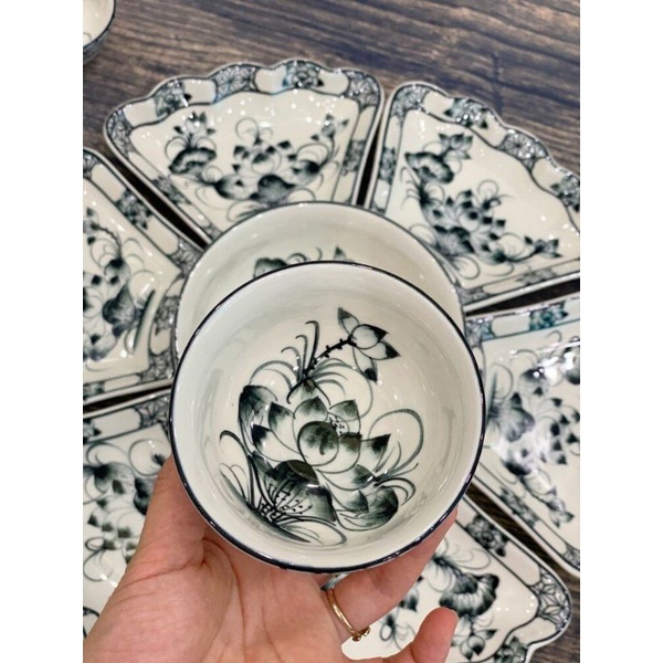 Nhà cửa & Đời sống > Bộ đồ bàn ăn > Tô || Bộ bát đĩa hoa mặt trời vẽ sen.Hàng sứ Bát Tràng.Còn hàng