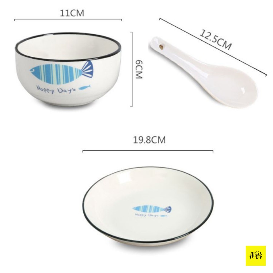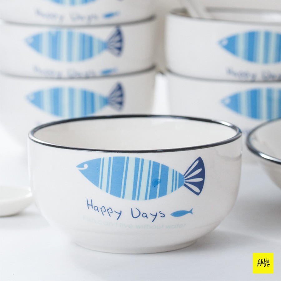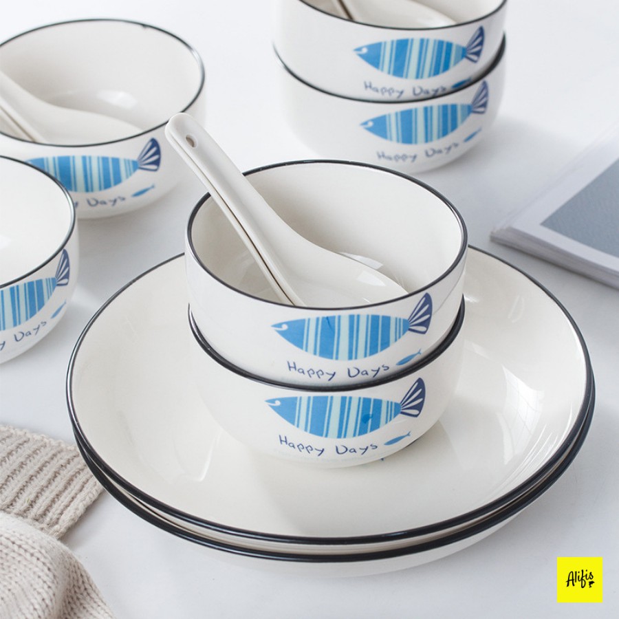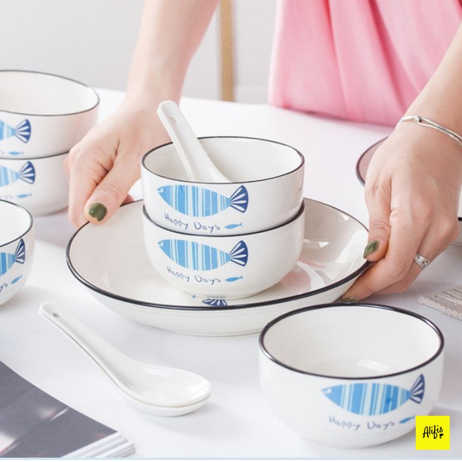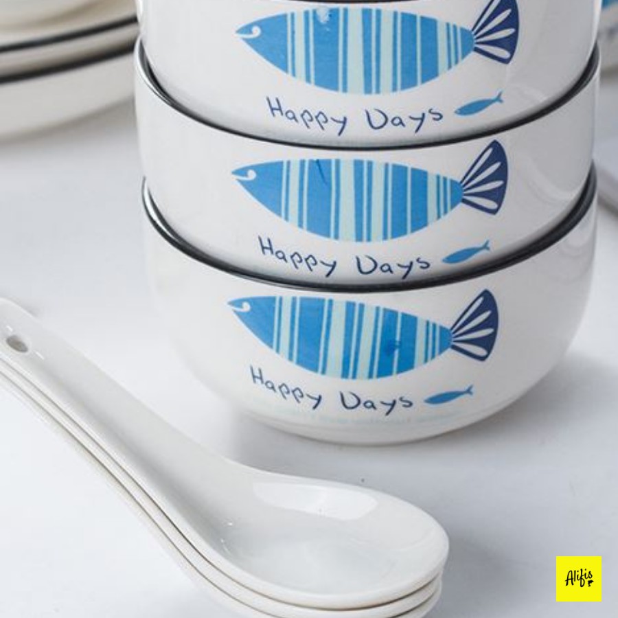 - Bộ bát với họa tiết cá xanh đáng yêu đặc biệt thích hợp cho các gia đình có trẻ nhỏ.