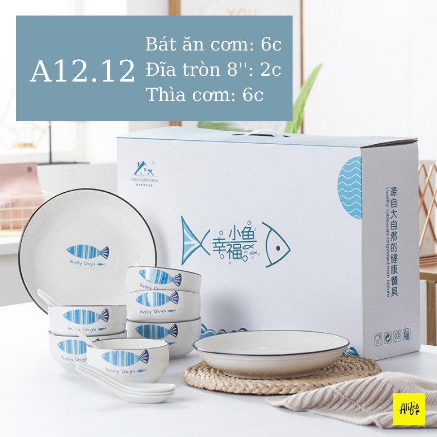 Nhà cửa & Đời sống > Bộ đồ bàn ăn > Dĩa || Bộ bát đĩa họa tiết cá xanh kèm hộp quà tặng – Phù hợp cho 2-6 người [Hàng sẵn]Còn hàng