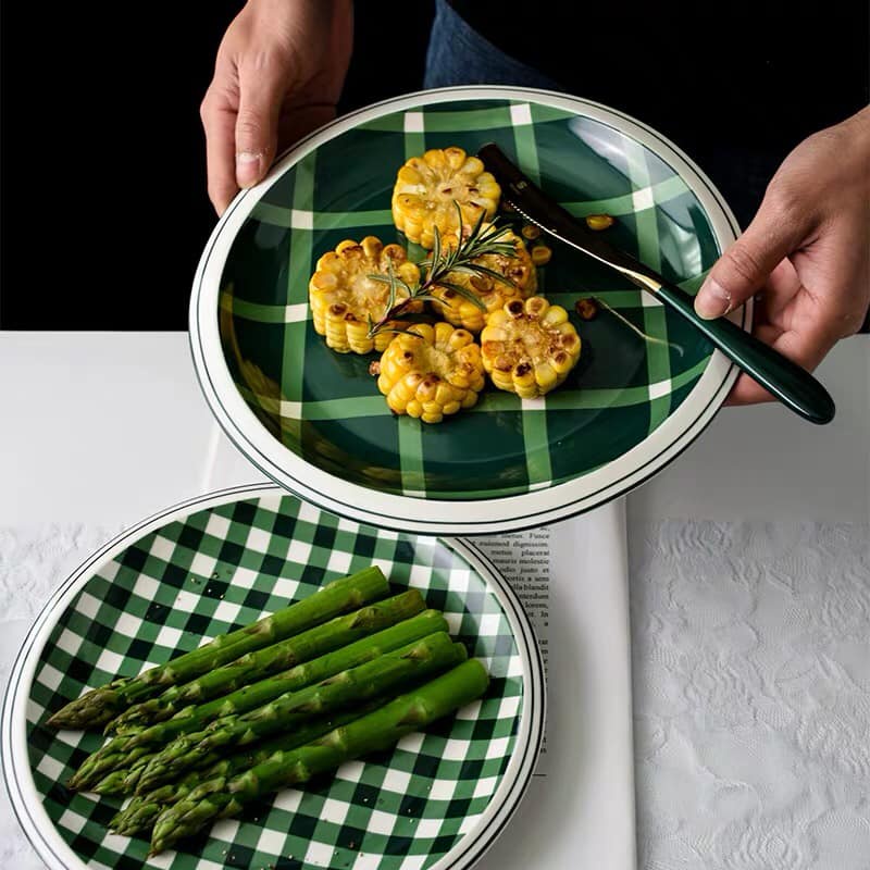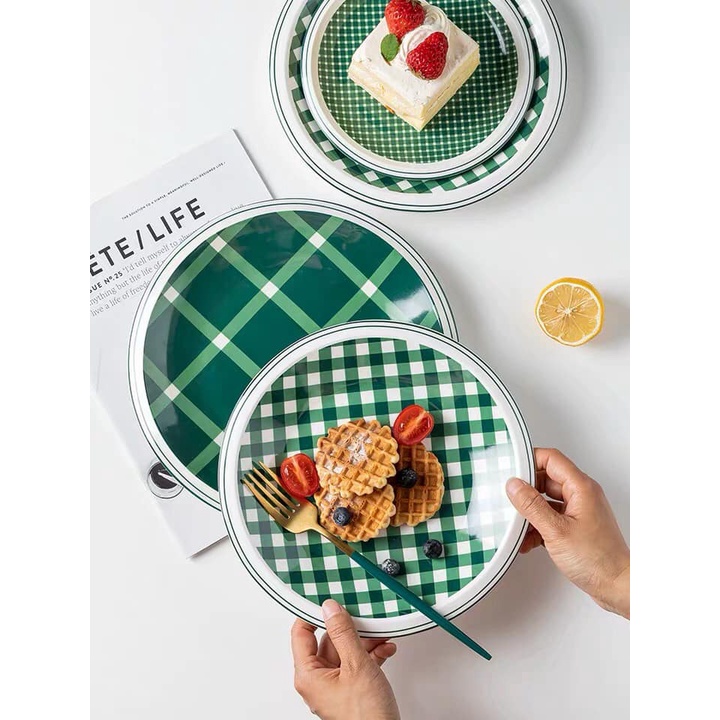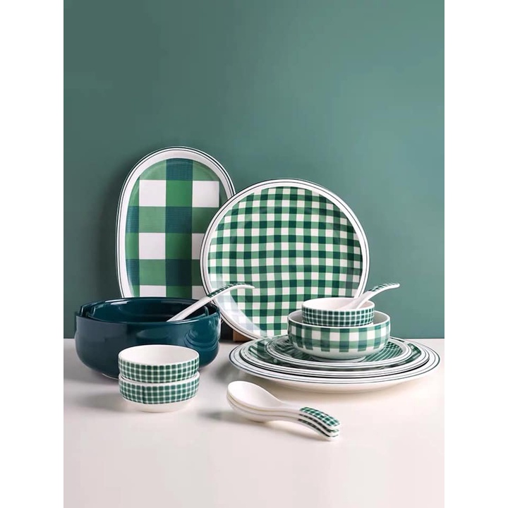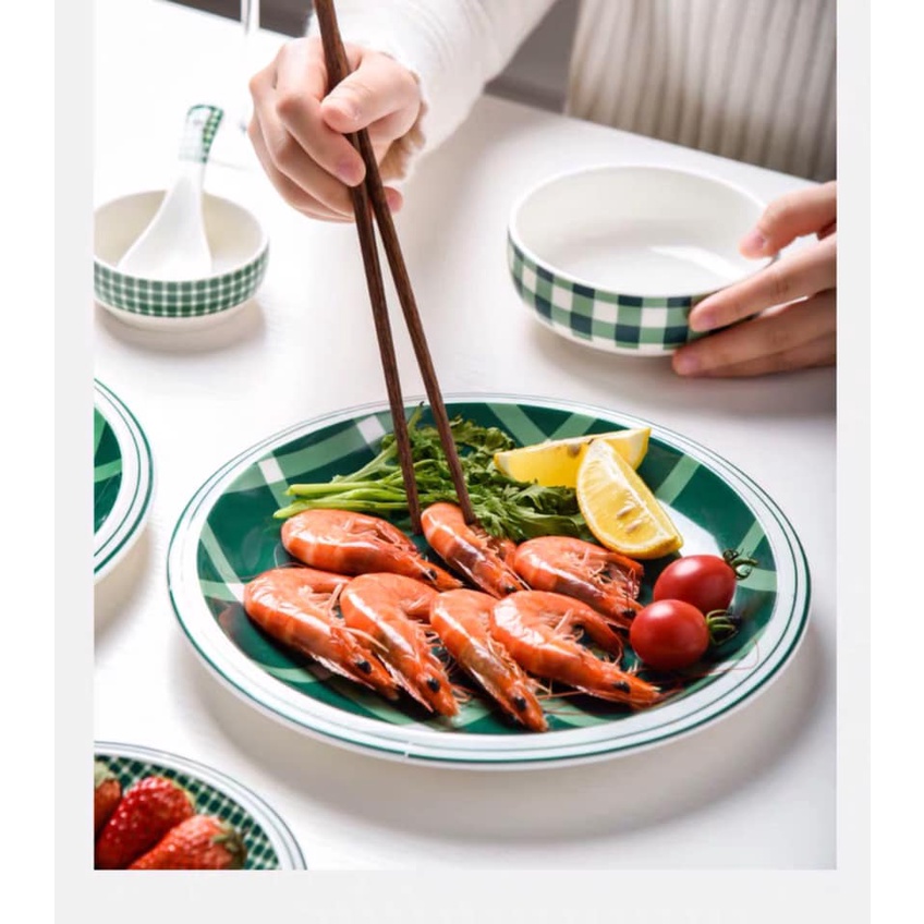 Nhà cửa & Đời sống > Bộ đồ bàn ăn > Tô || Bộ bát đĩa họa tiết caro xanh phong cách Hàn Quốc trẻ trung, hiện đại, tiện dụng, chất liệu sứ cao cấpCòn hàng