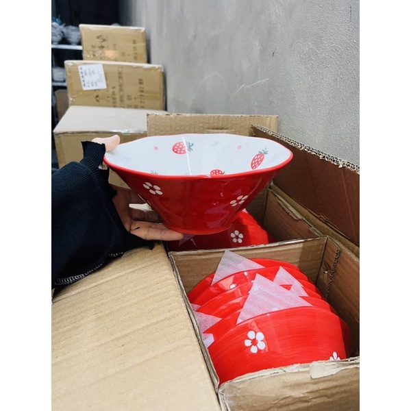 Nhà cửa & Đời sống > Bộ đồ bàn ăn > Tô || Bộ bát đĩa hoạ tiết dâu tây gốm sứ 15 món siêu đẹpCòn hàng