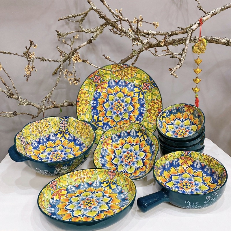 Nhà cửa & Đời sống > Bộ đồ bàn ăn > Tô || Bộ bát đĩa hoạ tiết thổ cẩm siêu đẹpCòn hàng