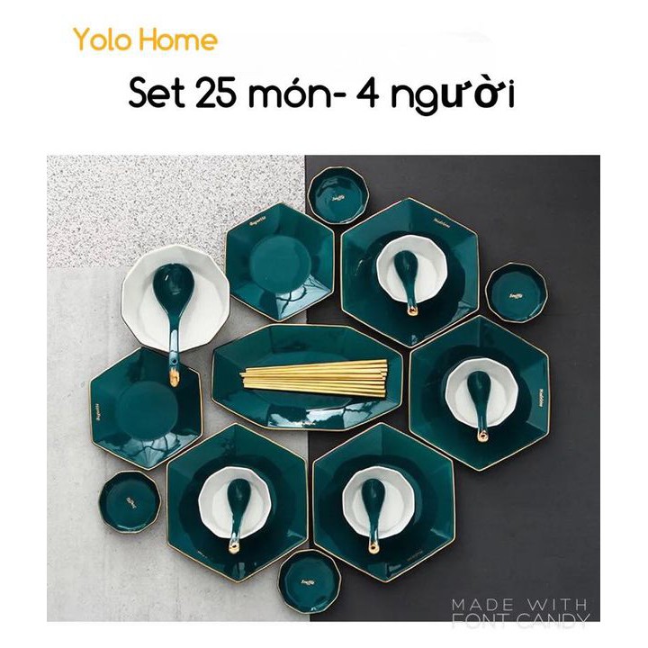 Nhà cửa & Đời sống > Bộ đồ bàn ăn > Dĩa || Bộ bát đĩa kim cương ☘𝘾𝘼𝙊 𝘾𝘼̂́𝙋☘ Bộ bát đĩa sứ 25, 32 món sang trọngCòn hàng