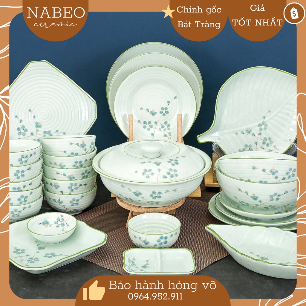 Nhà cửa & Đời sống > Bộ đồ bàn ăn > Tô || Bộ Bát Đĩa Mai Xanh Men Kem, Bát Đĩa ăn cơm nhiều chi tiết ( có bán lẻ ) Gốm Sứ Bát TràngCòn hàng