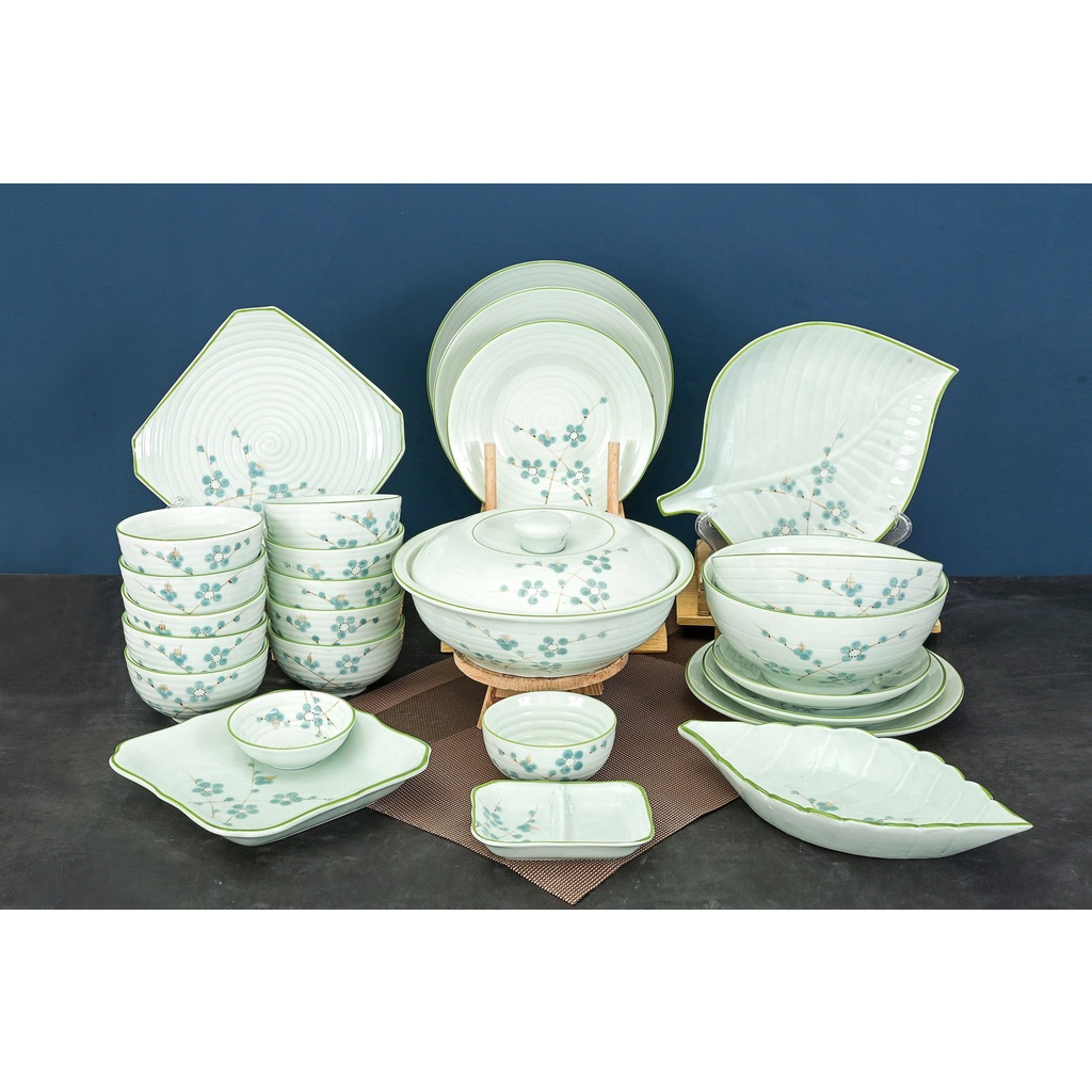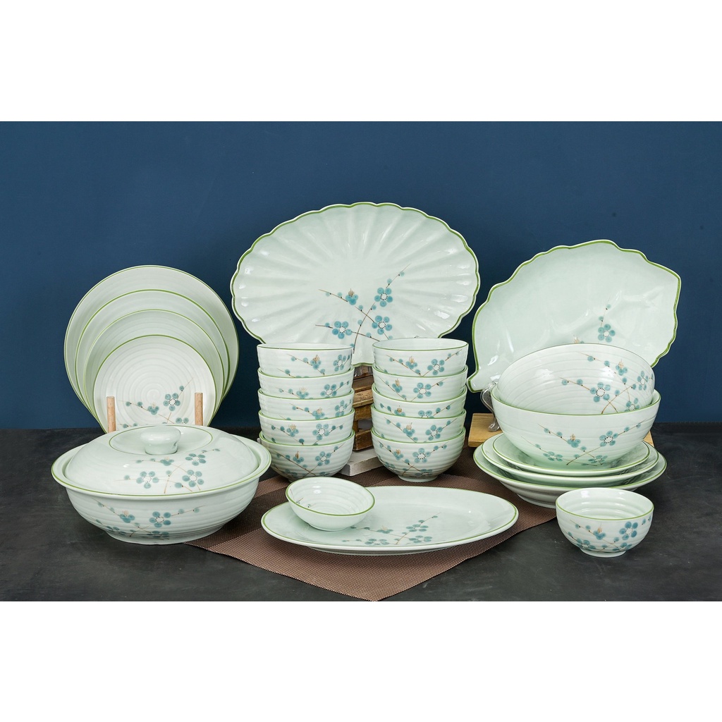 Bộ Bát Đĩa Mai Xanh Men Kem, Tô Chén ăn cơm nhiều chi tiết ( có bán lẻ ) Gốm Sứ Bát Tràng