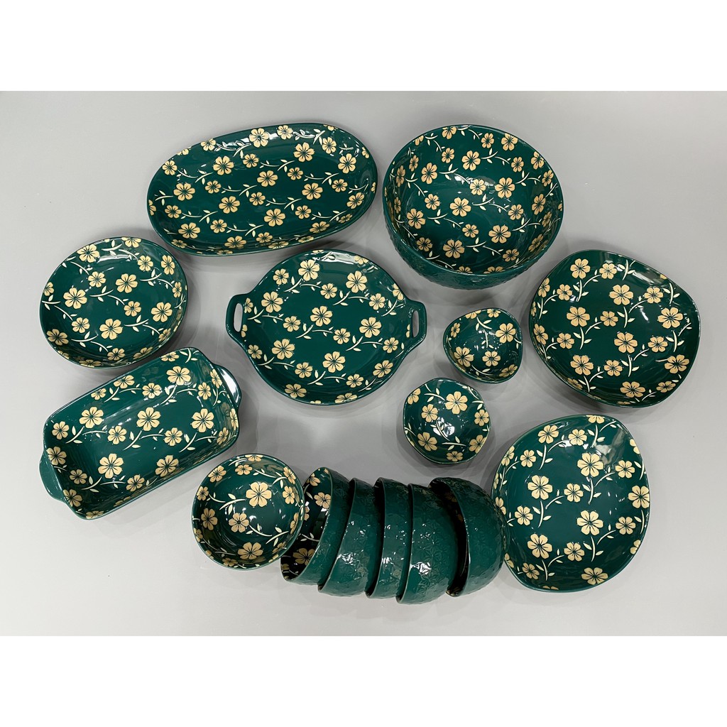 Nhà cửa & Đời sống > Bộ đồ bàn ăn > Dĩa || Bộ bát đĩa men xanh 15 món cực sang chảnhCòn hàng