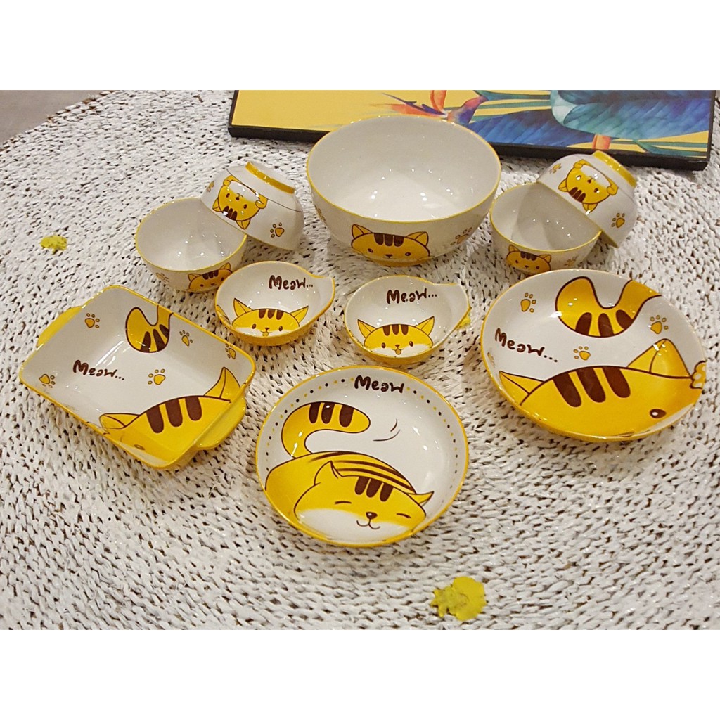 Bộ bát đĩa mèo vàng gốm sứ siêu đẹp
