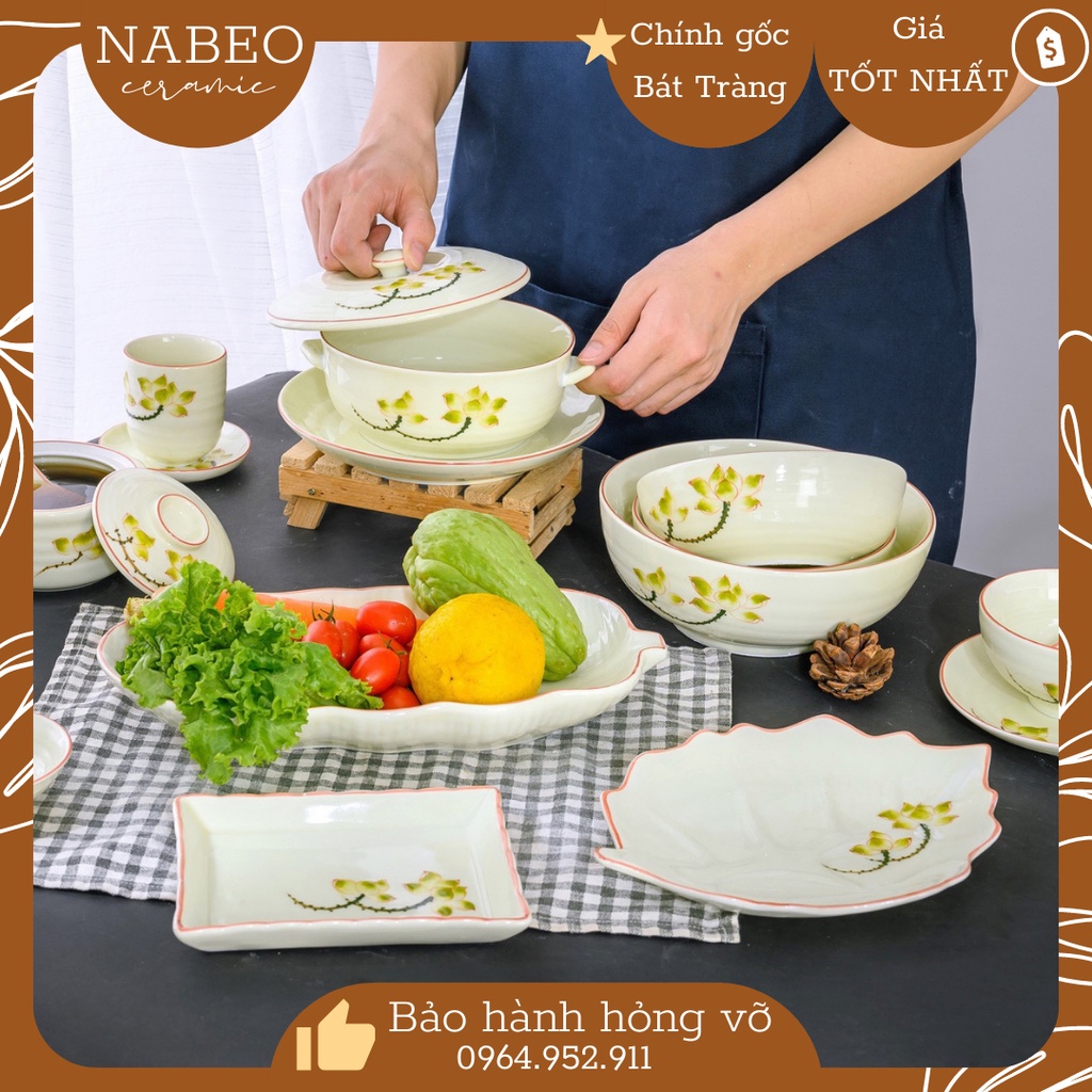 Bộ Bát Đĩa Sen Vàng Bát Tràng, Tô Chén ăn cơm, Bộ Qùa Tặng Gốm Sứ Có bán lẻ và bán theo bộ