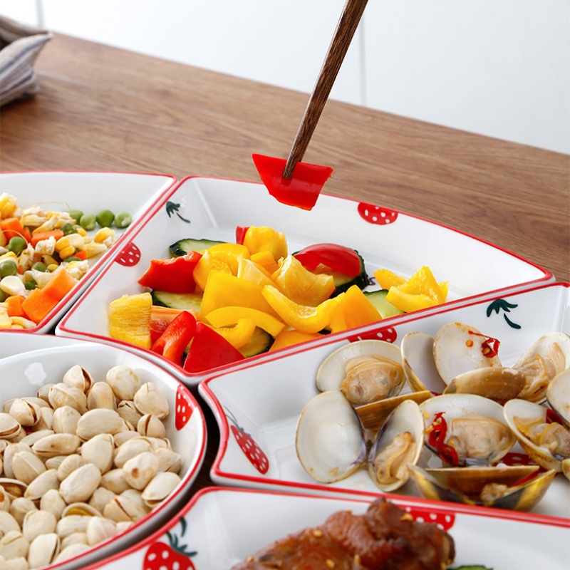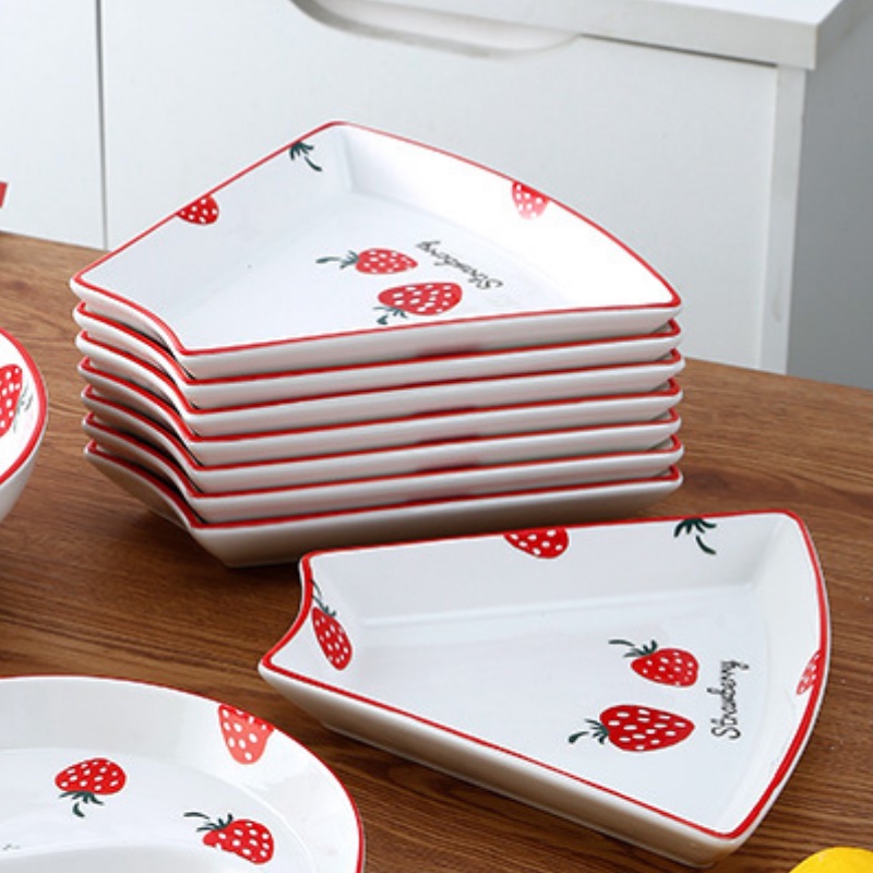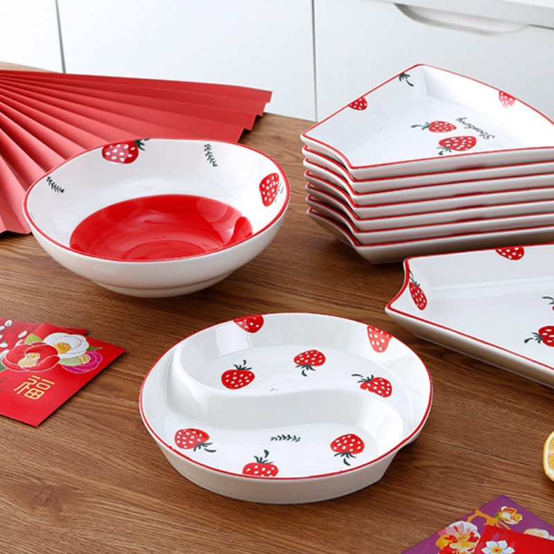 🌻 Tên sản phẩm: Set 10 món bát đĩa sứ họa tiết dâu tây đỏ phong cách Hàn Quốc - Phụ kiện bàn ăn