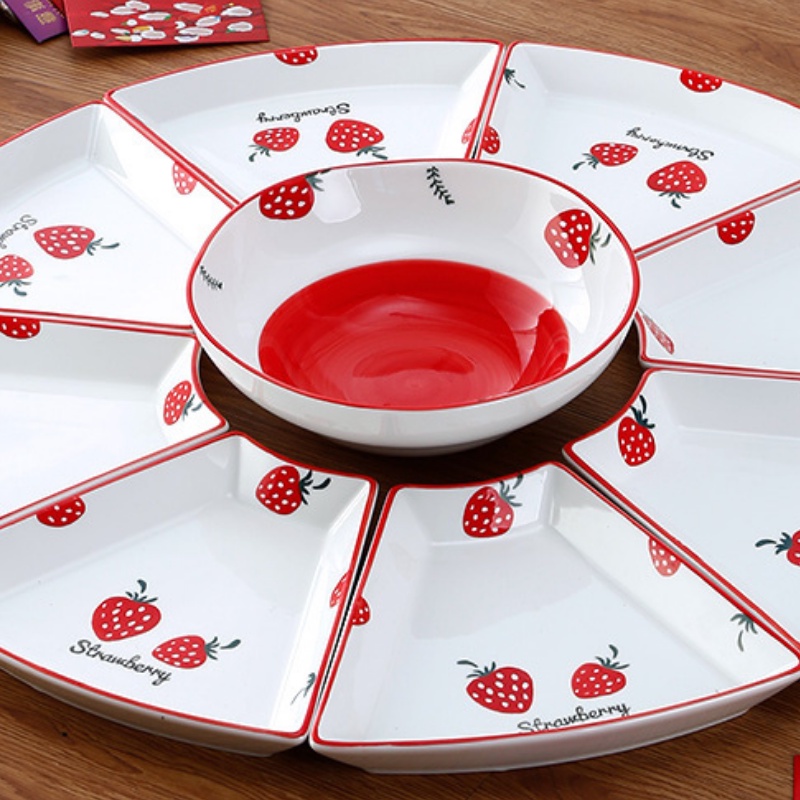 - Set 10 món bát đĩa được thiết kế độc đáo với họa tiết dâu tây đỏ xinh xắn