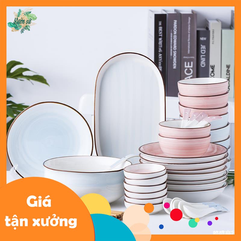 Nhà cửa & Đời sống > Bộ đồ bàn ăn > Dĩa || Bộ bát đĩa sứ 15 món vân sóng xanh, hồng cao cấp - VS55Còn hàng