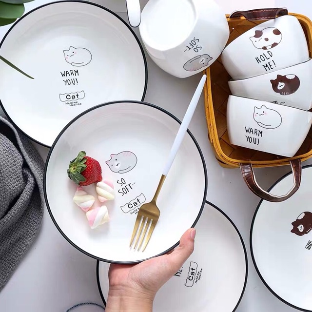 Nhà cửa & Đời sống > Bộ đồ bàn ăn > Dĩa || Bộ bát đĩa sứ 18 món họa tiết hình mèo đáng yêu - VS266Còn hàng