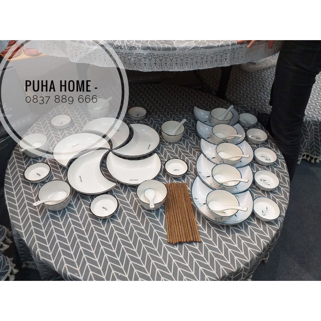 Bộ bát đĩa sứ 25 món ♥️𝑪𝑨𝑶 𝑪𝑨̂́𝑷♥️ Bộ bát đĩa sứ 25 món hình bán nguyệt phong cách hiện đại( Có bán đĩa riêng)