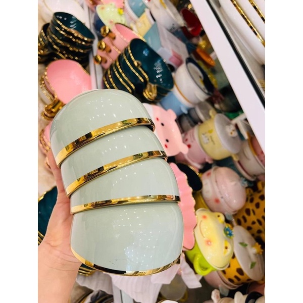 - Sản phẩm được thiết kế hiện đại, màu sắc trang nhã, viền mạ vàng nổi bật, đẹp mắt tạo nên sự sang trọng, lịch thiệp cho bàn ăn của gia đình bạn