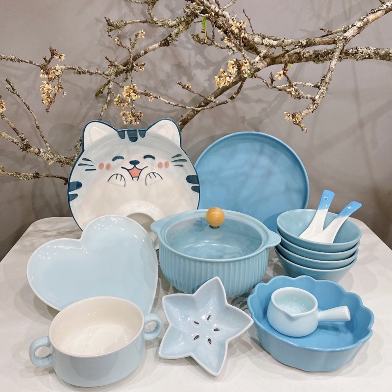 Nhà cửa & Đời sống > Bộ đồ bàn ăn > Tô || Bát Đĩa sứ, Bát ăn cơm, bộ chén dĩ dễ thương, đĩa sứ decor Bộ bát đĩa màu xanh da trời siêu xinhCòn hàng