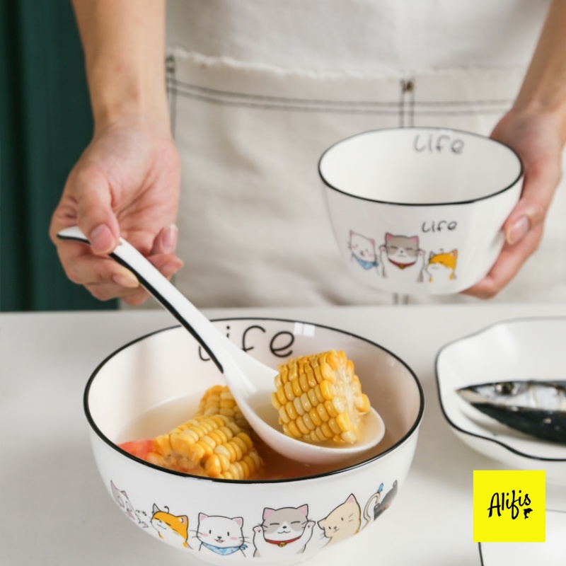 Bộ sưu tập bát đĩa sứ, bát đĩa họa tiết mèo life ngộ nghĩnh Alifis