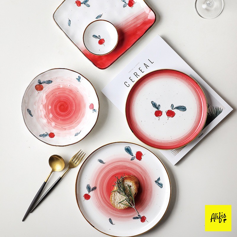 Giới thiệu Bát đĩa sứ cao cấp decor họa tiết củ cải đỏ men tiêu - phong cách bắc âu Alifis