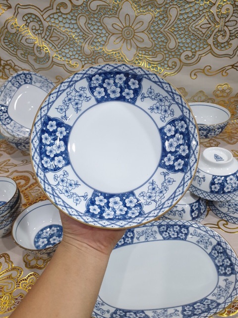 Nhà cửa & Đời sống > Bộ đồ bàn ăn > Dĩa || Bộ Bát Đĩa Sứ [Bát Tràng] [Cao Cấp] Vẽ Hoa Đào,mạ viền Cực Sang,men Sứ Dầy Dặn,Họa Tiết Rõ Nét,14 Chi TiếtCòn hàng