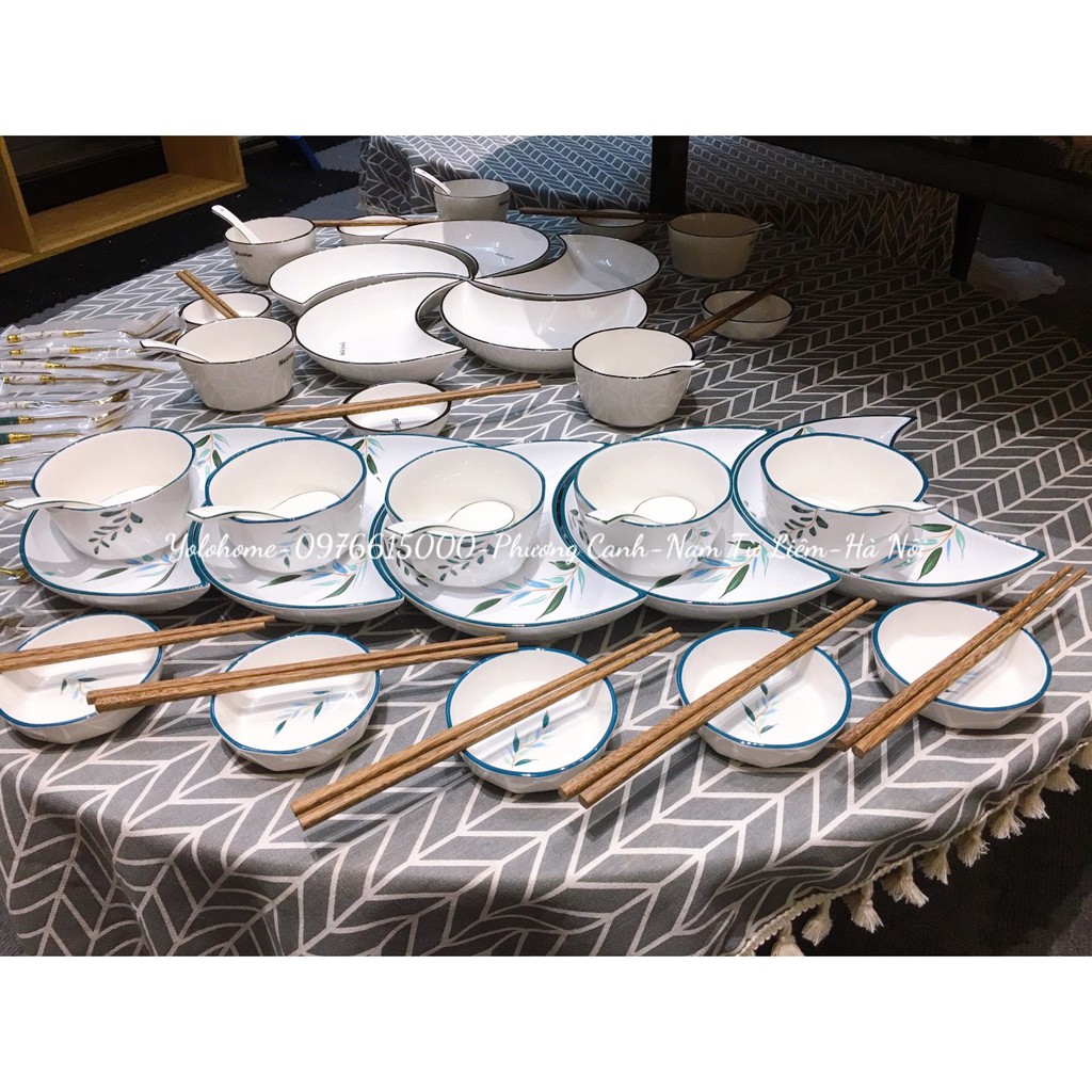 Bát đĩa sứ, bộ bát đẹp, đĩa hình bán nguyệt cao cấp phong cách hiện đại