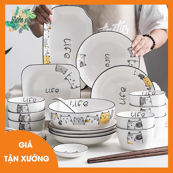 Nhà cửa & Đời sống > Bộ đồ bàn ăn > Tô || Bát đĩa sứ, bộ bát đĩa cao cấp họa tiết hình mèo 18 món – VS134Còn hàng