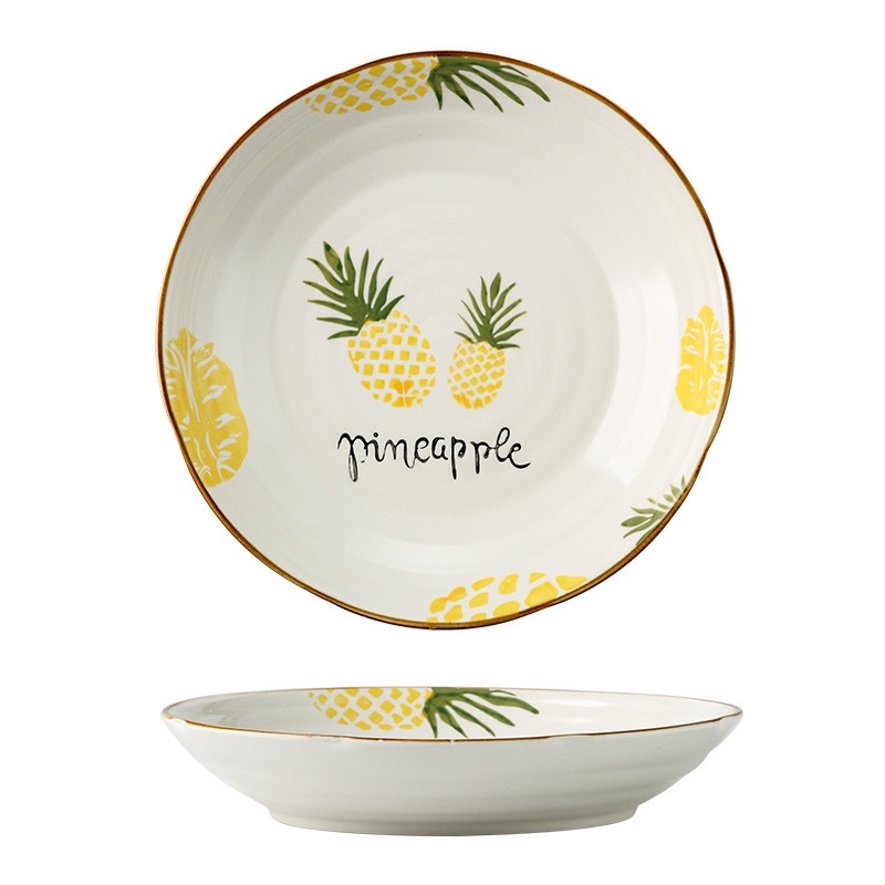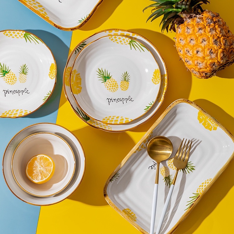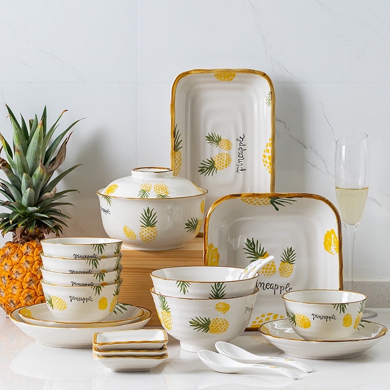 Bộ Bát Đĩa Sứ Chén Dĩa ăn cơm cao cấp họa tiết Dứa Vàng decor dễ thương xinh xắn