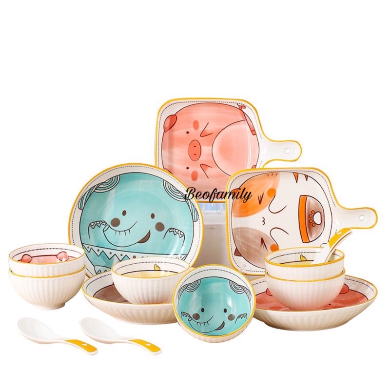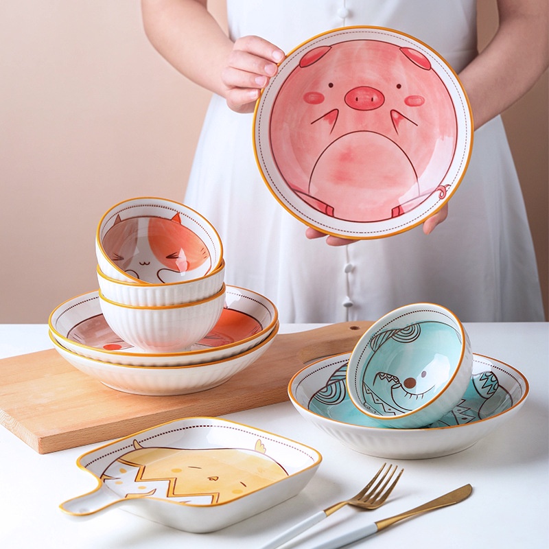 Nhà cửa & Đời sống > Bộ đồ bàn ăn > Tô || Bộ bát đĩa sứ, chén đĩa decor bằng gốm sứ men đẹp in hình động vật ngộ nghĩnhCòn hàng