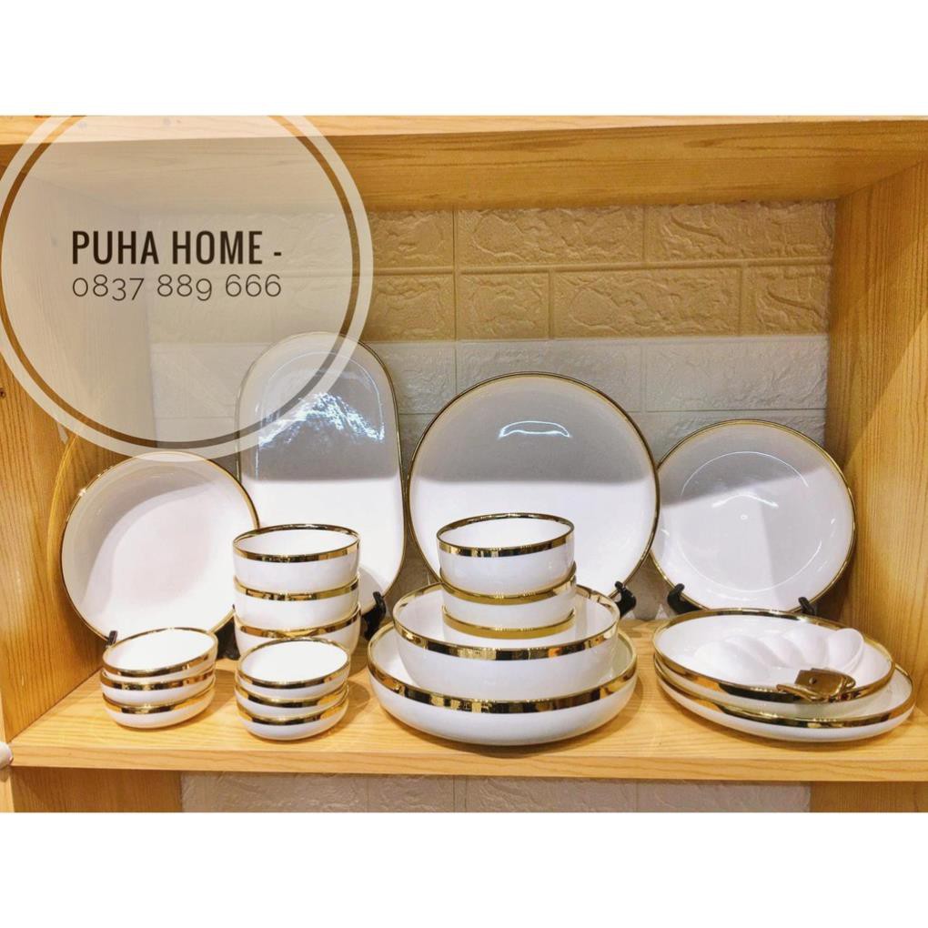 Bộ bát đĩa sứ dành cho 6 người[VIDEO SHOP TỰ QUAY]gồm 26 món với nhiều màu sắc độc đáo, sang trọng